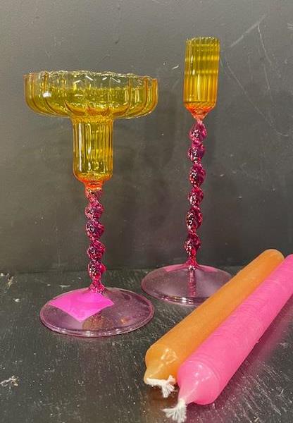 Beautiful vibrant glass candle holders two designs , candles sold seperatley