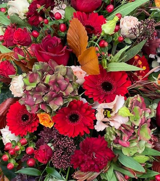 Red russets and autumns in a double ended spray
