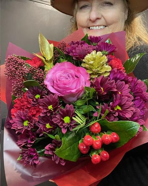 Warm rich reds and jewel colours in a hand tied style bouquet. Gorgeous to send gorgeous to receive gorgeous for you