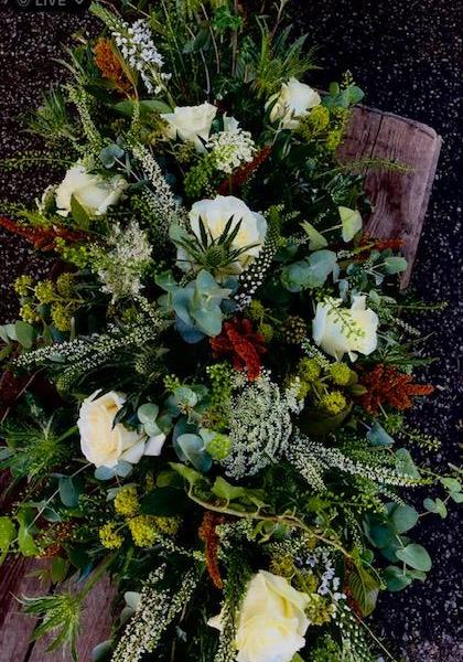 Beautiful rustic spray with mixed autumnal tones and dried flowers