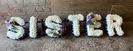 Sister tribute based in white with sprays and ribboning of your choice