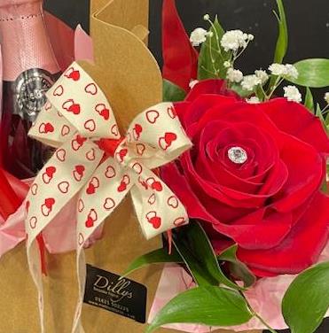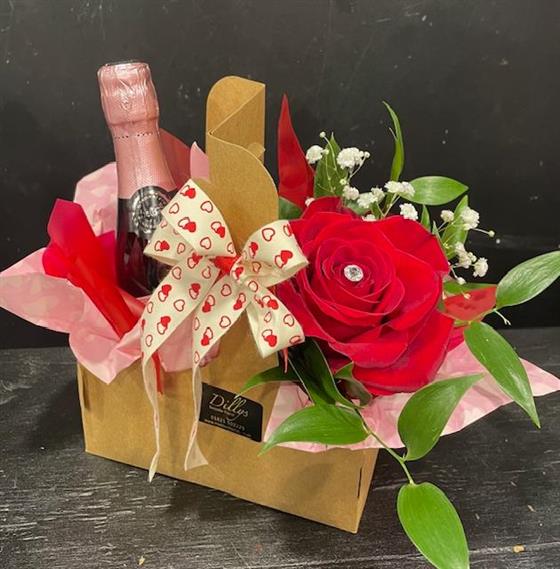 Show how much they mean with our true devotion package mini prosecco and a red rose