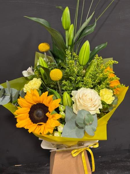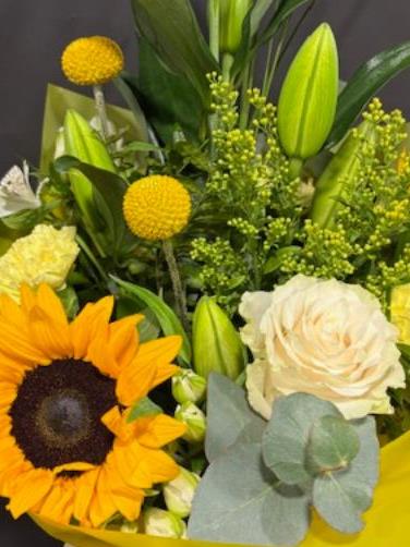 Zesty lemons and whites had tied of lily roses and sunflowers perfect to brighten your day