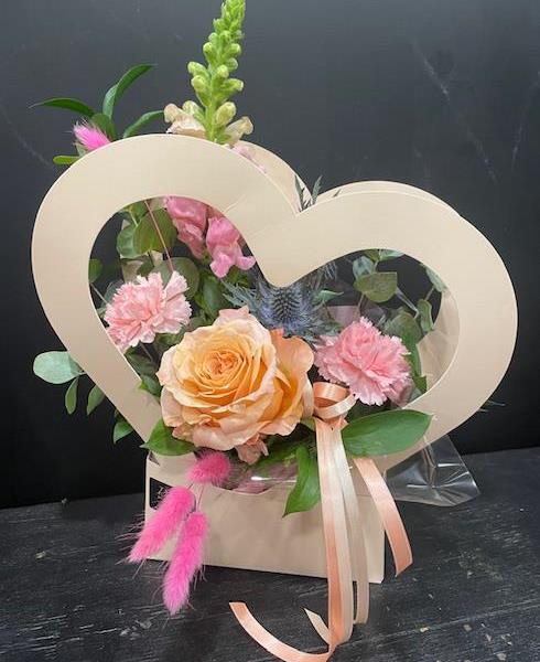 Sweet and sentimental, this piece feels perfect for showing and sending love . A lovely combination of soft pinks and peach tones with a heart shaped frame