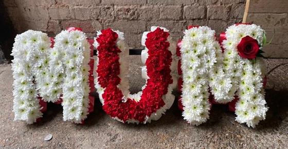 Mum tribute based in white with U in red , can be made in any colour combination please call shop for details